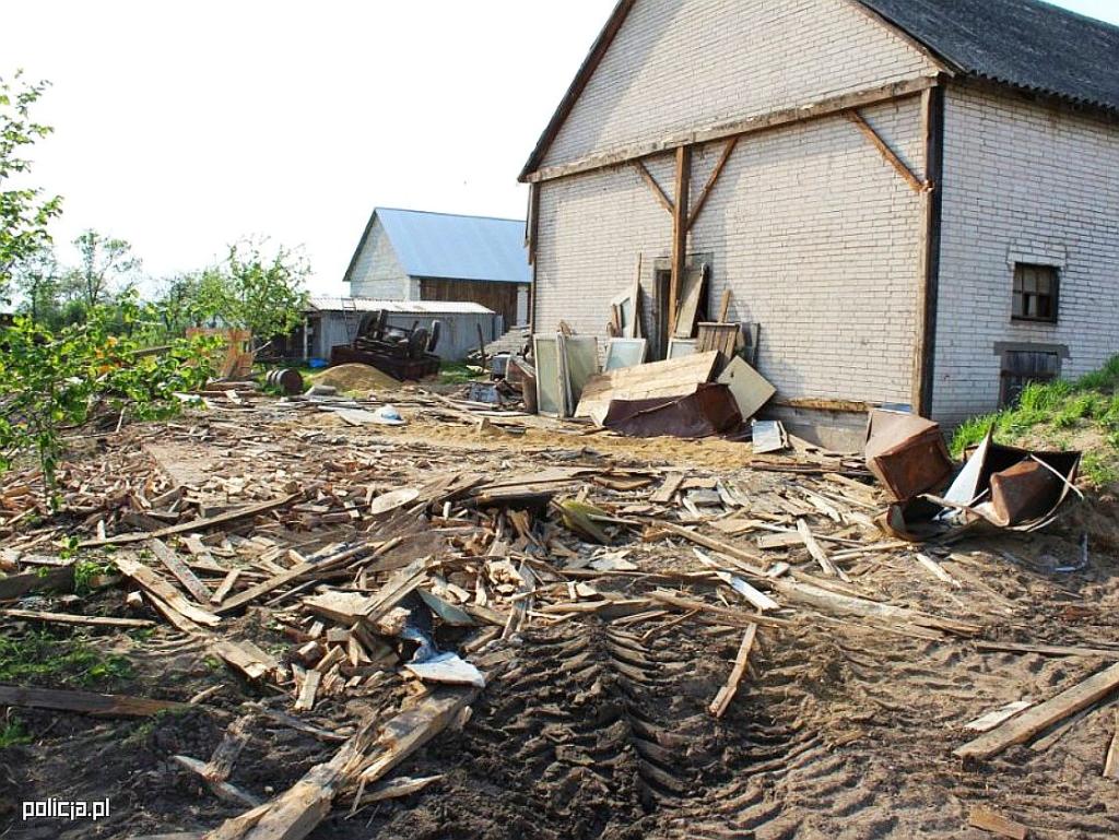 Policjanci z komisariatu w Jadowie otrzymali zgłoszenie od właściciela jednego z gospodarstw o niszczeniu jego mienia przez szwagra, który przejechał do niego koparko-ładowarką i taranuje budynki gospodarcze oraz maszyny i sprzęt rolniczy. Funkcjonariusze od razu udali się pod wskazany adres.