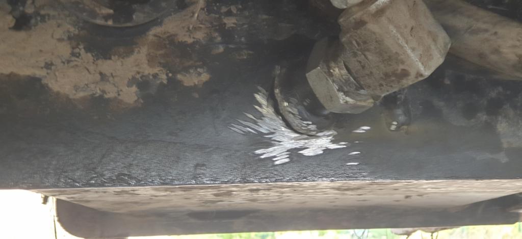 Jak się okazuje skradziona koparko-ładowarka miała charakterystyczne uszkodzenie zbiornika na olej hydrauliczny. Uszkodzenie jest widoczne od dołu zbiornika ale trzeba się położyć pod koparkę, by to zobaczyć. My publikujemy je kolejnych zdjęciach przed i po naprawie.