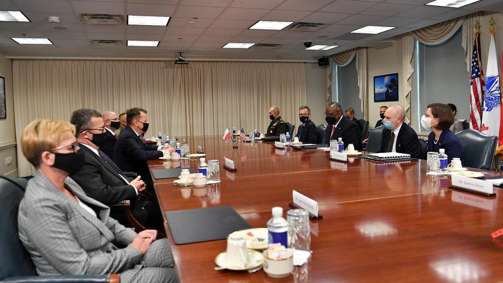 Rozmowy dotyczyły także pogłębiania interoperacyjności wojsk, amerykańskiej obecności wojskowej w Polsce, sytuacji bezpieczeństwa w Europie oraz zakupów zbrojeniowych. Minister Błaszczak przedstawił również szczegółowe informacje dotyczące sytuacji na granicy polsko-białoruskiej.