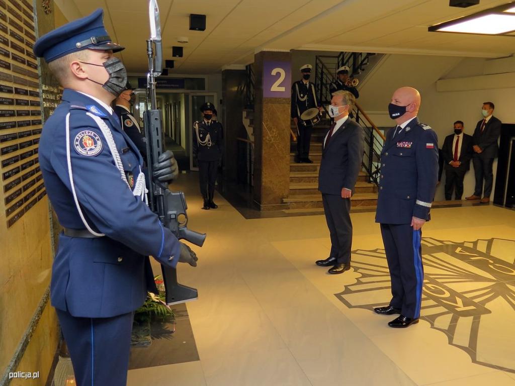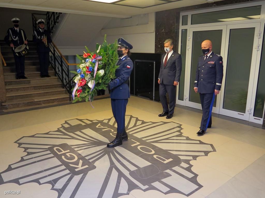 Przed rozpoczęciem oficjalnego spotkania Szef Polskiej Policji oraz Dyrektor FBI oddali hołd policjantom poległym na służbie oraz złożyli pamiątkowy wieniec przed tablicą epitafijną w Komendzie Głównej Policji.