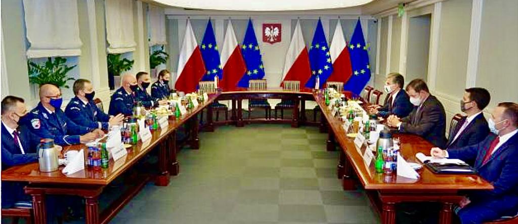 2 listopada 2021 roku w Sali im. Generałów Polskiej Policji w Komendzie Głównej Policji miało miejsce wyjątkowe wydarzenie – na spotkanie z Szefem polskiej Policji przybyli reprezentanci Federalnego Biura Śledczego najwyższego szczebla. Skład amerykańskiej delegacji tworzyli: Pan Christopher Wray – Dyrektor FBI, Pan Scott McCullough – Zastępca Szefa Kancelarii Dyrektora FBI, Pani Sherri Onks – Specjalny Doradca Dyrektora FBI, Pan Michael Malsch, Oficer Łącznikowy FBI w Polsce oraz Pan Matthew Winn – Zastępca Oficera Łącznikowego FBI w Polsce.