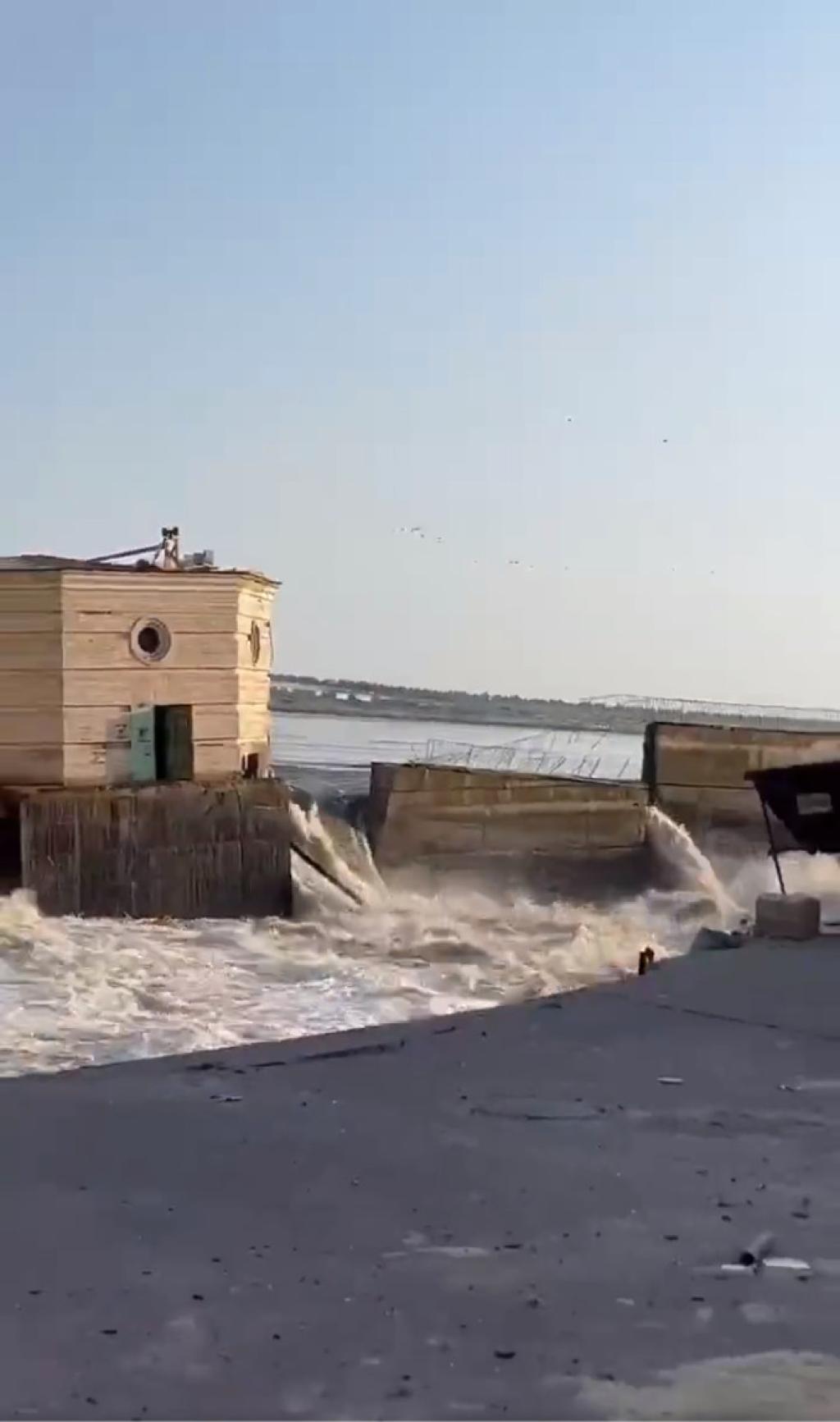 Rosjanie w okupowanej Nowej Kachowce zniszczyli zaporę wodną na spiętrzeniu rzeki Dniepr. Wielu miejscowościom grozi zalanie.