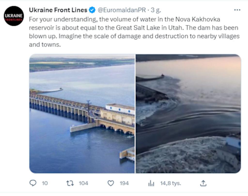 Ukraiński prezydent nazwał aktem terroryzmu wysadzenie zapory Kachowskiej Elektrowni Wodnej