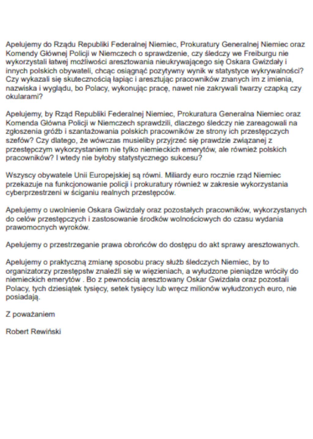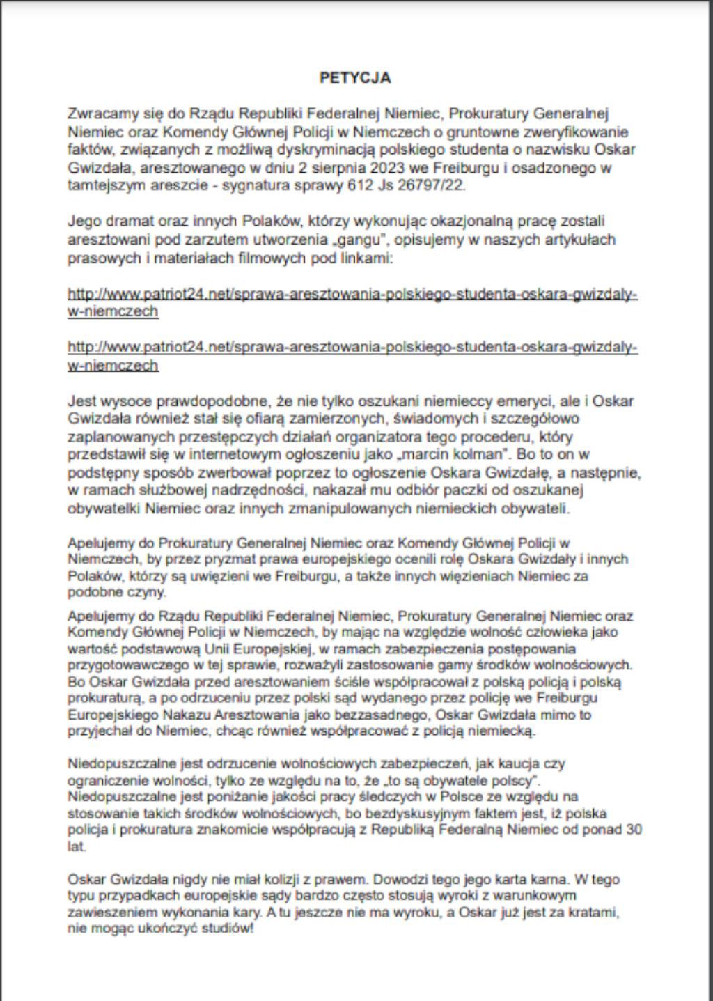 Nie wiemy, czy ambasador Republiki Federalnej Niemiec w Polsce uszanuje międzynarodowe standardy związane z przyjmowaniem petycji. Dlatego już teraz prezentujemy całość tego dokumentu publicznie zarówno w języku polskim, jak i niemieckim.