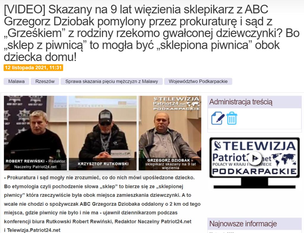 - Dotarliśmy do informacji od członka rodziny tej niepełnosprawnej dziewczynki, że może chodzić o przydomową, sklepioną piwnicę, którą na tamtej wsi nazywało się „sklepem”. A w jej rodzinie jest też Grzegorz, więc dziś nie wiadomo, kto, co i gdzie tej dziewczynce robił. Bo policja wykluczyła, by jakiekolwiek zdjęcia robił jej Grzegorz Dziobak, o co też został oskarżony! - przekazuje Robert Rewiński, Redaktor Naczelny Patriot24.net i Telewizja.Patriot24.net, który był dziś w Sądzie Najwyższym na ogłoszeniu wyroku.