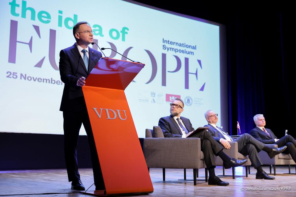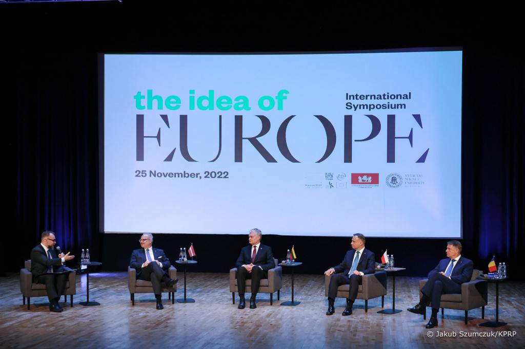 Prezydent Republiki Litewskiej Ginatas Nausėda przywitał Andrzeja Dudę na Uniwersytecie Witolda Wielkiego w Kownie, gdzie przywódcy Polski, Litwy, Łotwy i Rumunii biorą udział w otwarciu międzynarodowej konferencji The Idea of Europe, organizowanej w ramach obchodów Europejskiej Stolicy Kultury Kowno 2022. Andrzej Duda będzie zabrał także głos podczas panelu prezydenckiego konferencji.
