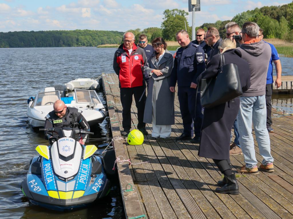 W poniedziałek nad Jeziorem Zegrzyńskim odbyły się warsztaty z doskonalenia umiejętności teoretycznych i praktycznych w zakresie operowania skuterem wodnym z platformą ratowniczą LifeSled. Wzięli w nich udział policyjni wodniacy z całej Polski, zaproszeni przez Komendanta Komisariatu Rzecznego Policji w Warszawie.