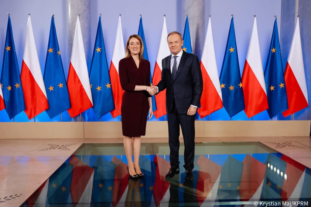 Bardzo się cieszę, że Polska powraca do serca Europy i staje się jej liderem – mówiła Roberta Metsola po spotkaniu z Premierem Donaldem Tuskiem.