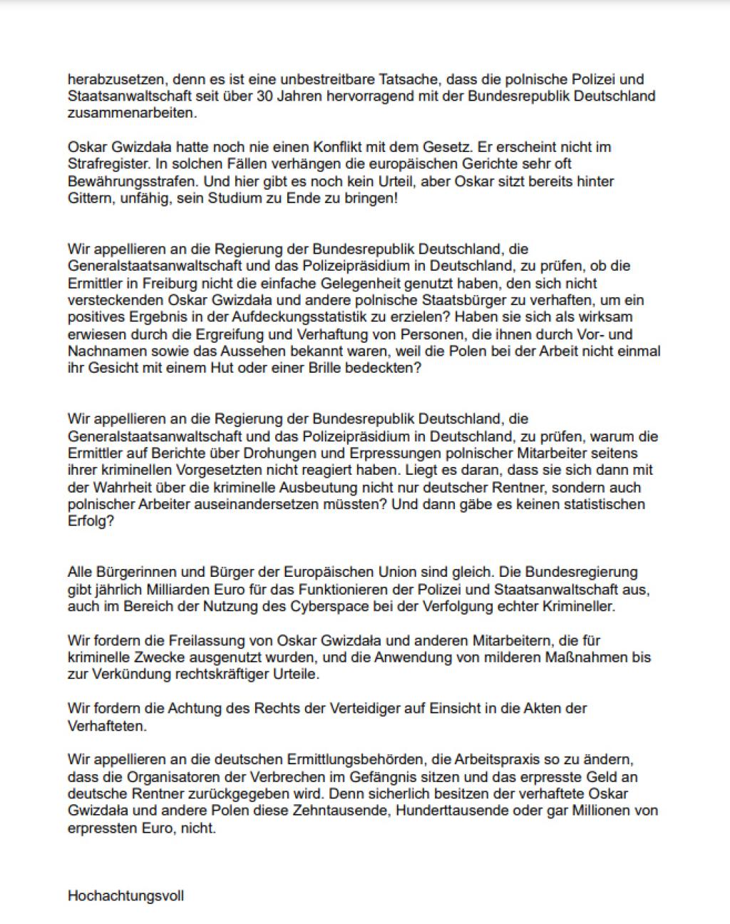 Wir wissen nicht, ob der Botschafter der Bundesrepublik Deutschland in Polen die internationalen Standards für die Annahme von Petitionen einhalten wird. Aus diesem Grund stellen wir das gesamte Dokument bereits jetzt der Öffentlichkeit in polnischer und deutscher Sprache vor.